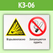 Знак «Взрывоопасно - запрещается курить», КЗ-06 (пластик, 400х300 мм)