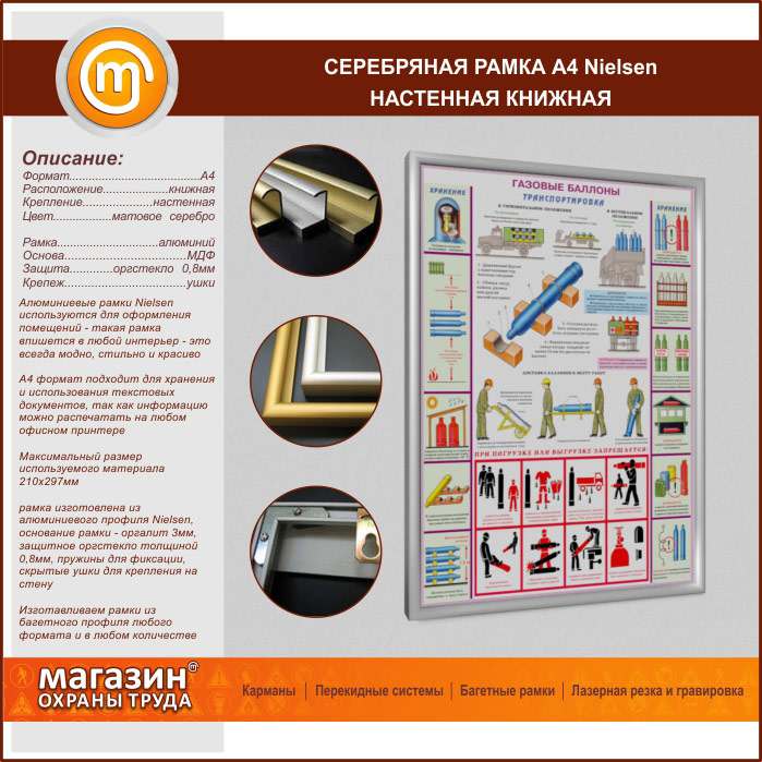 Багетная настенная рамка «Nielsen» А4 формата, книжная, матовое серебро в Краснодаре купить