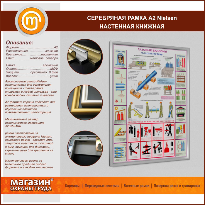 Багетная настенная рамка «Nielsen» А2 формата, книжная, матовое серебро в Краснодаре купить