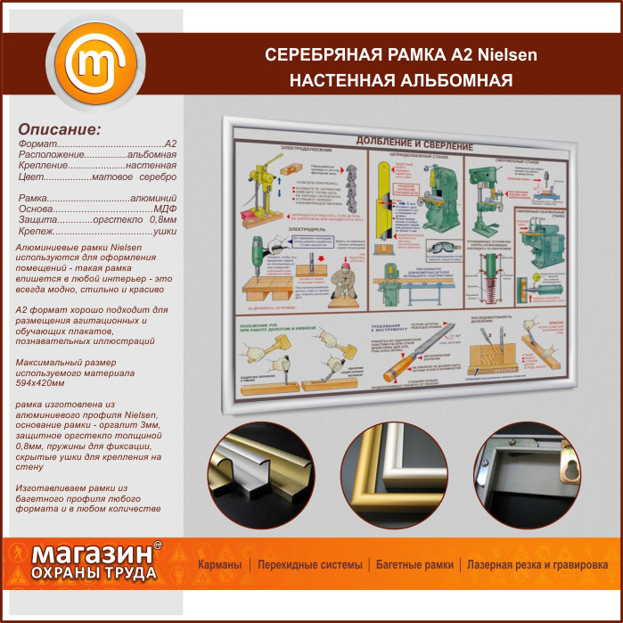 Багетная настенная рамка «Nielsen» А2 формата, альбомная, матовое серебро в Краснодаре купить