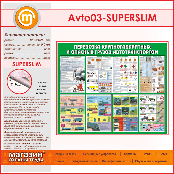Стенд «Перевозка крупногабаритных и опасных грузов автотранспортом» (AV-03-SUPERSLIM) в Краснодаре купить