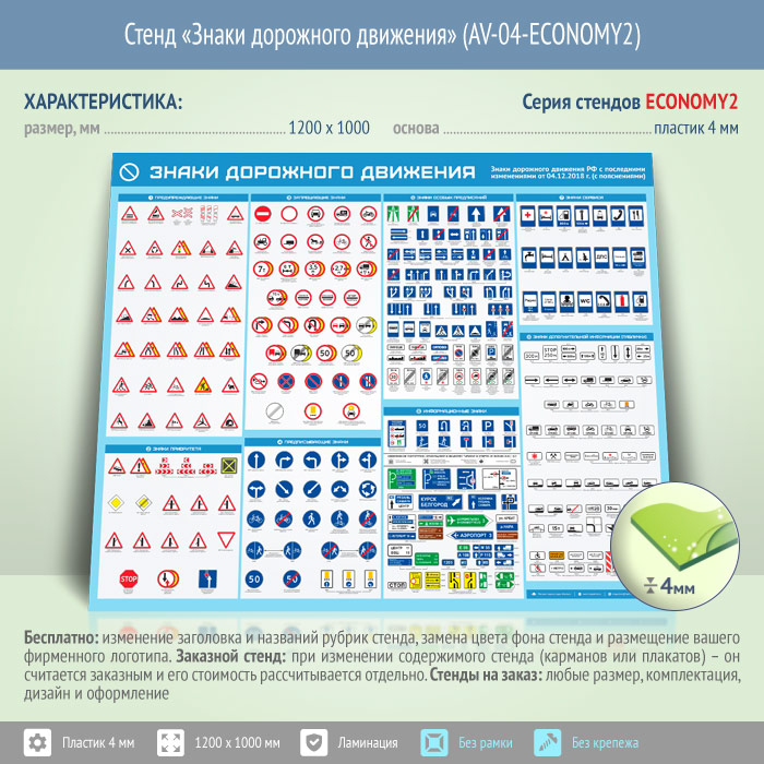 Стенд «Знаки дорожного движения» (AV-04-ECONOMY2) в Краснодаре купить