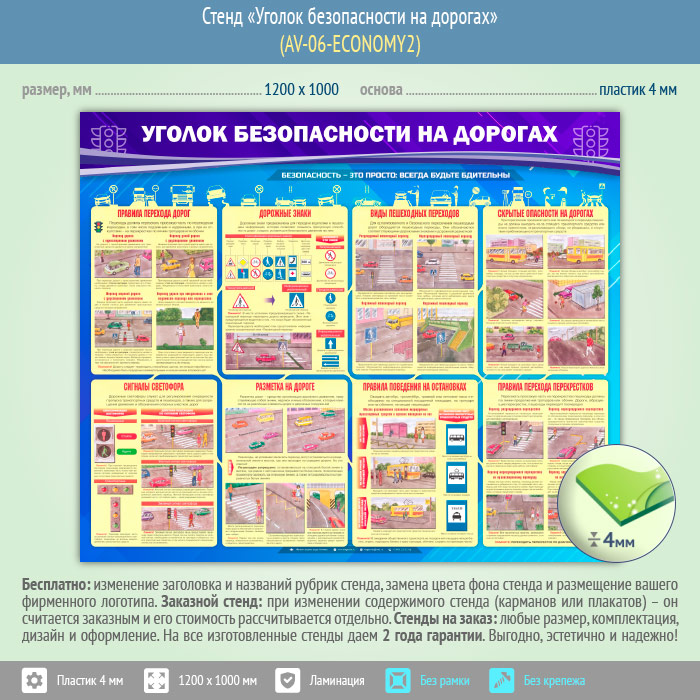 Стенд «Уголок безопасности на дорогах» (AV-06-ECONOMY2) в Краснодаре купить