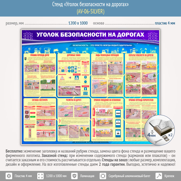 Стенд «Уголок безопасности на дорогах» (AV-06-SILVER) в Краснодаре купить