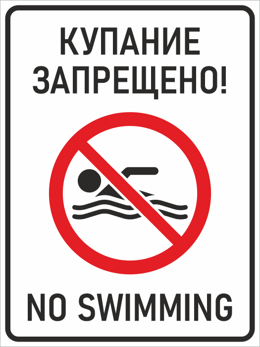 Знак «Купание запрещено! / No swimming», БВ-13 (пластик 2 мм, 400х600 мм) в Краснодаре купить