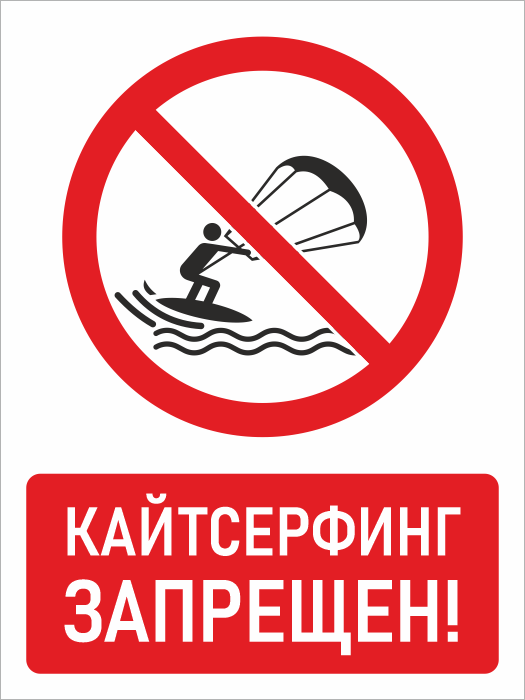 Знак «Кайтсерфинг запрещен!», БВ-23 (пластик 2 мм, 300х400 мм) в Краснодаре купить