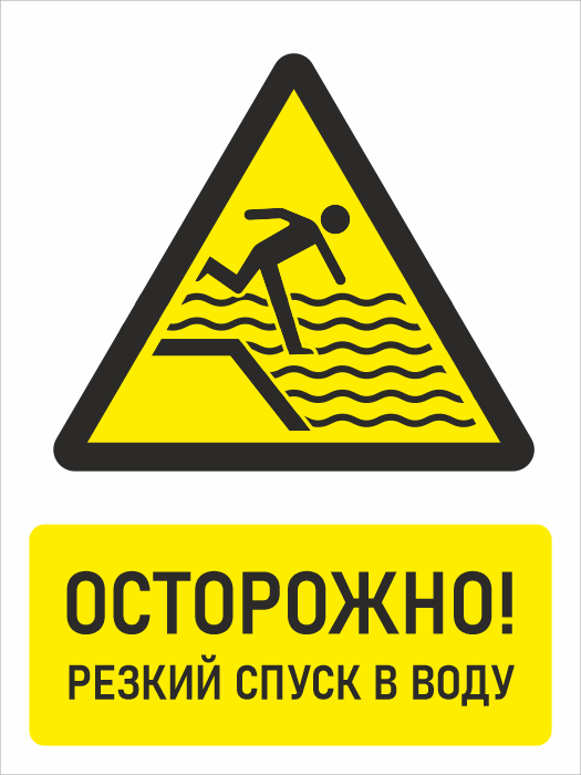 Знак «Осторожно! Резкий спуск в воду», БВ-32 (пленка, 400х600 мм) в Краснодаре купить