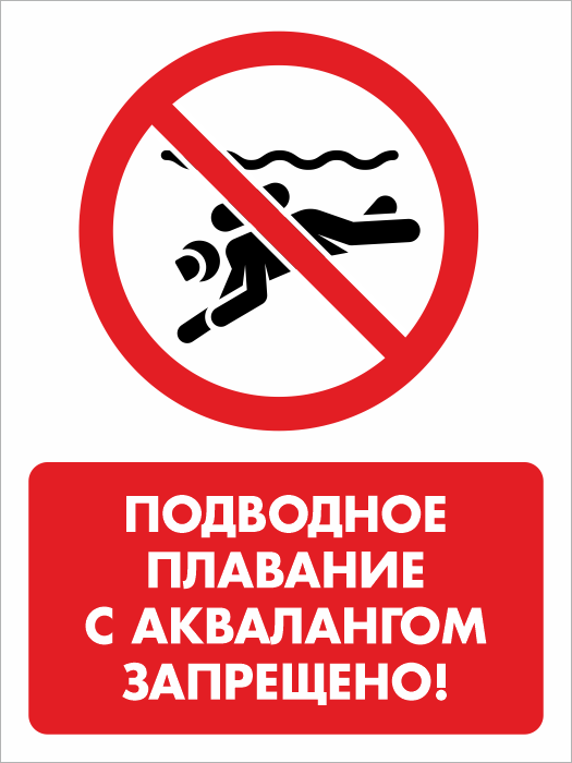 Знак «Подводное плавание с аквалангом запрещено!», БВ-38 (пленка, 400х600 мм) в Краснодаре купить