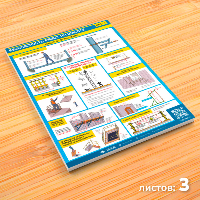 Плакаты «Безопасность работ на высоте» (М-52, ламинированная бумага, А2, 3 листа) в Краснодаре купить