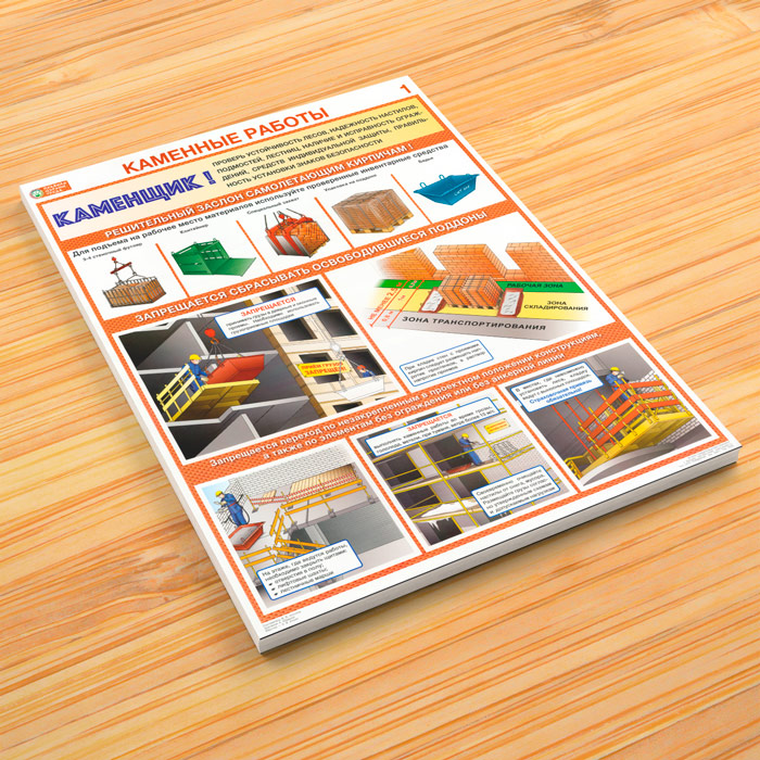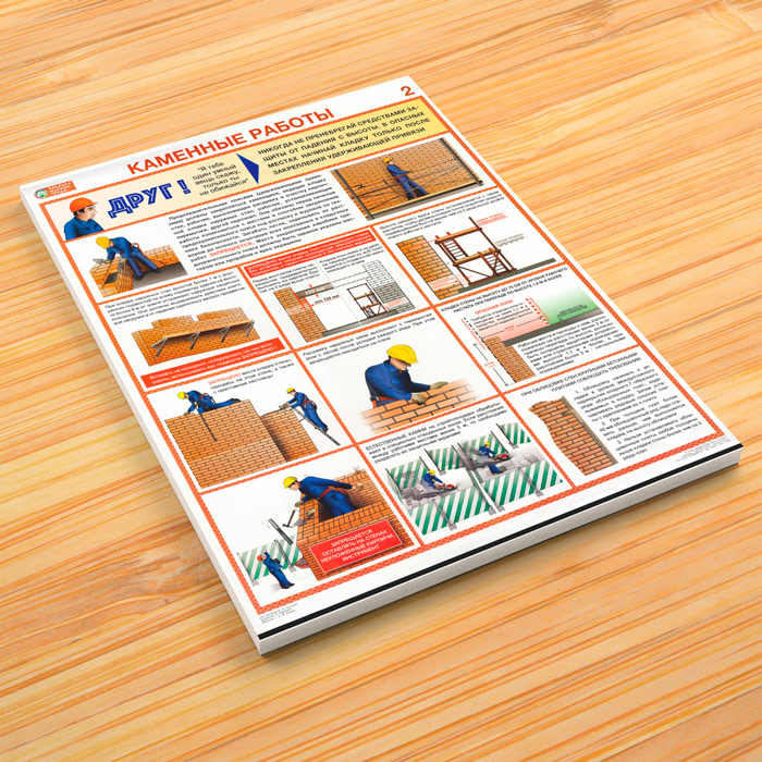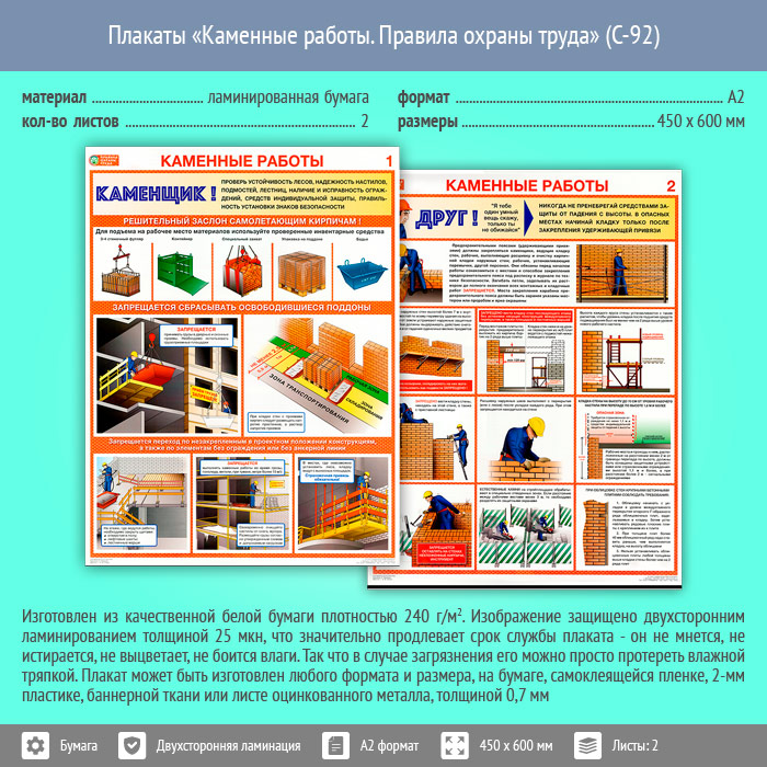 Плакаты «Каменные работы. Правила охраны труда» (С-92, ламинированная бумага, А2, 2 листа) в Краснодаре купить