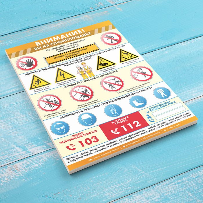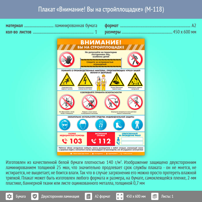 Плакат «Внимание! Вы на стройплощадке» (М-118, ламинированная бумага, А2, 1 лист) в Краснодаре купить