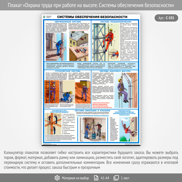 Плакат «Охрана труда при работе на высоте. Системы обеспечения безопасности» (С-101, 1 листа) в Краснодаре купить