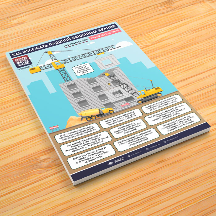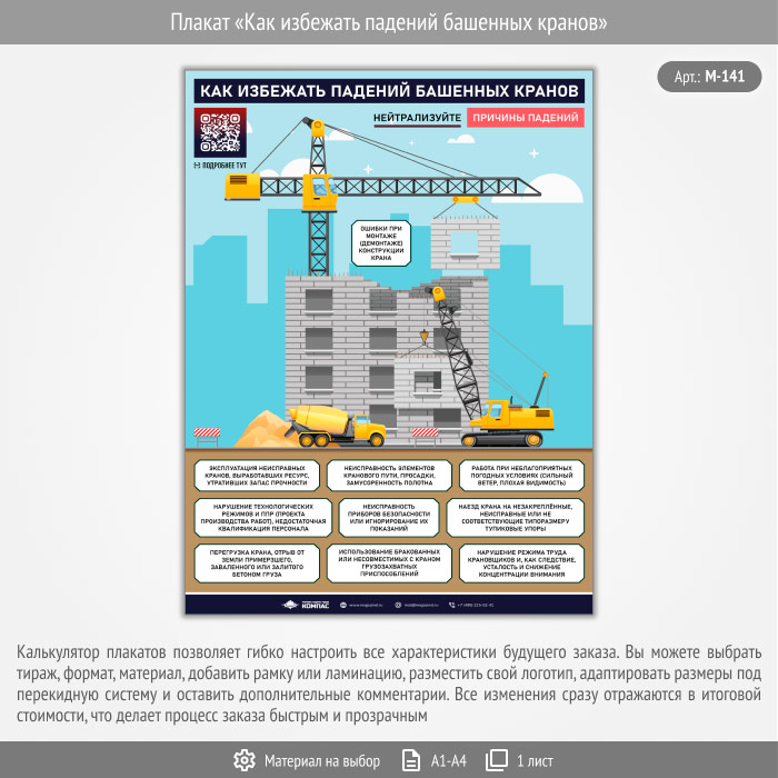 Плакат «Как избежать падений башенных кранов» с QR (М-141, 1 лист) в Краснодаре купить