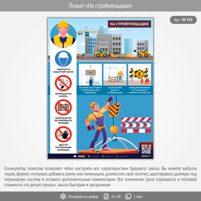Плакат «На стройплощадке» с QR (М-142, 1 лист) в Краснодаре купить