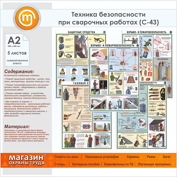 Плакаты «Техника безопасности при сварочных работах» (С-43, ламинированная бумага, А2, 5 листов) в Краснодаре купить