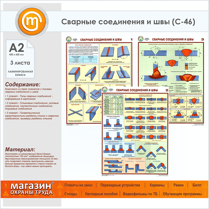 Плакаты «Сварные соединения и швы» (С-46, ламинированная бумага, А2, 3 листа) в Краснодаре купить