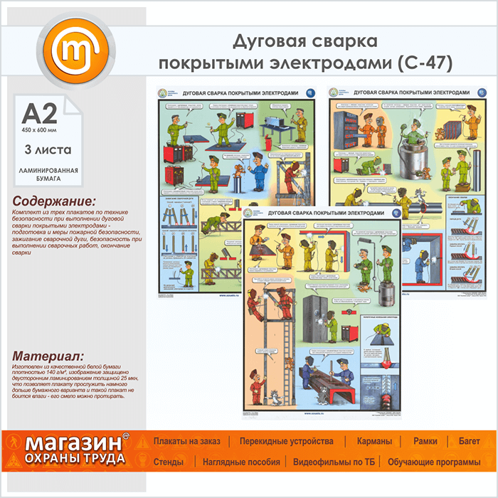 Плакаты «Дуговая сварка покрытыми электродами» (С-47, ламинированная бумага, А2, 3 листа) в Краснодаре купить