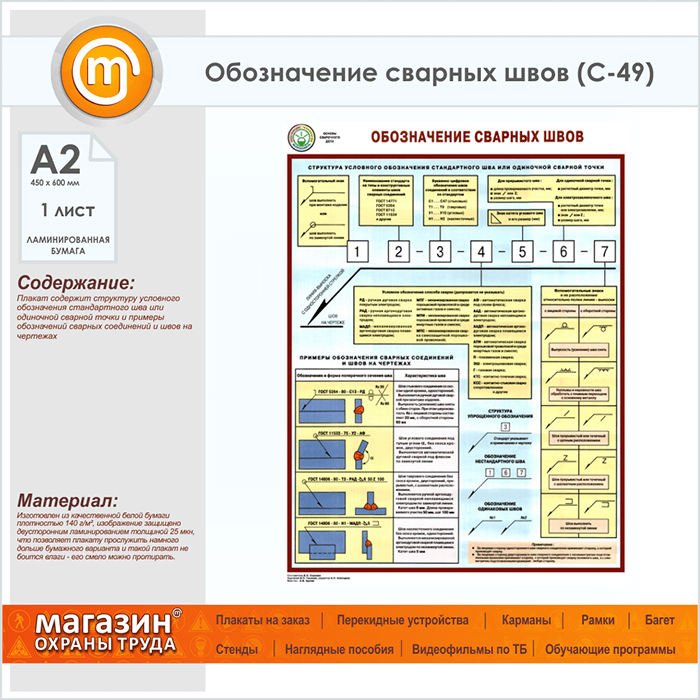 Плакат «Обозначение сварных швов» (С-49, ламинированная бумага, А2, 1 лист) в Краснодаре купить