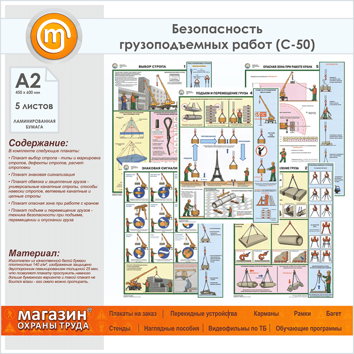 Плакаты «Безопасность грузоподъемных работ» (С-50, ламинированная бумага, А2, 5 листов) в Краснодаре купить