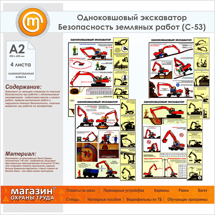 Плакаты «Одноковшовый экскаватор. Безопасность земляных работ» (С-53, ламинированная бумага, А2, 4 листа) в Краснодаре купить