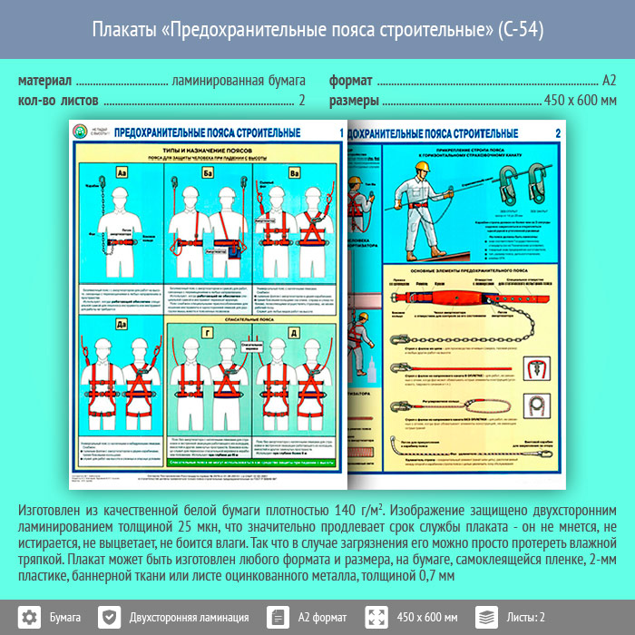 Плакаты «Предохранительные пояса строительные» (С-54, ламинированная бумага, А2, 2 листа) в Краснодаре купить