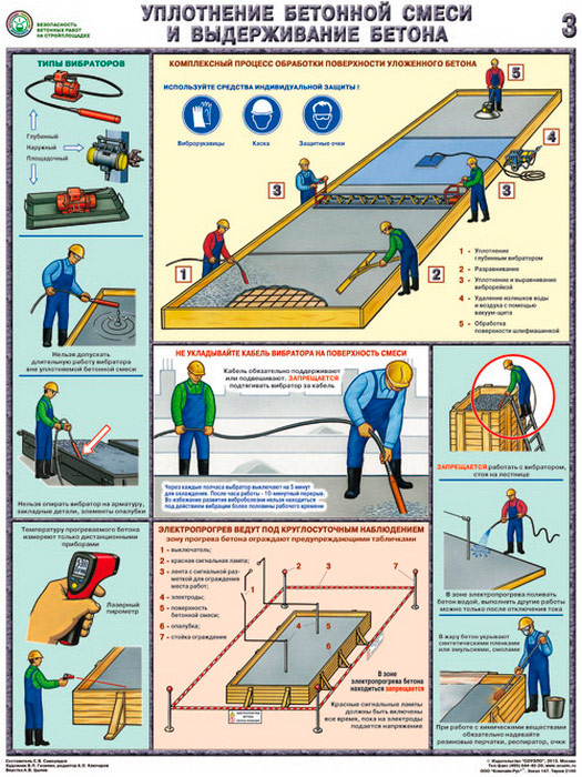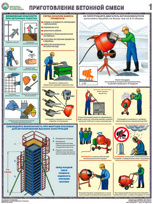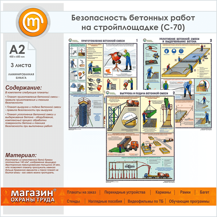 Плакаты «Безопасность бетонных работ на стройплощадке» (С-70, ламинированная бумага, А2, 3 листа) в Краснодаре купить