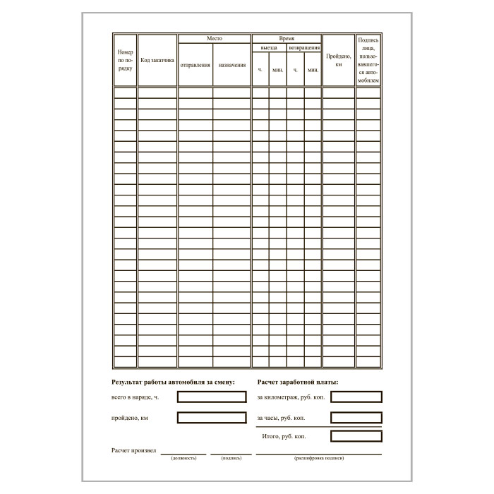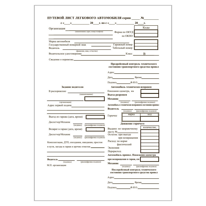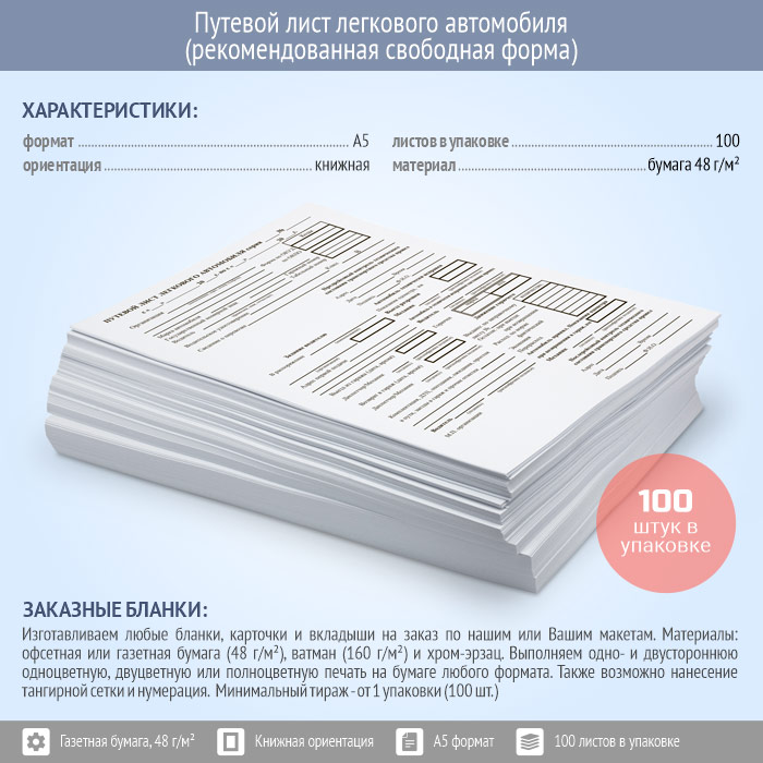 Путевой лист легкового автомобиля (рекомендованная свободная форма, упаковка из 100 штук) в Краснодаре купить
