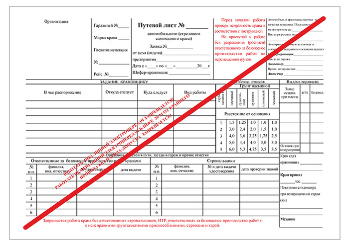Путевой лист самоходного крана (упаковка из 100 штук) в Краснодаре купить