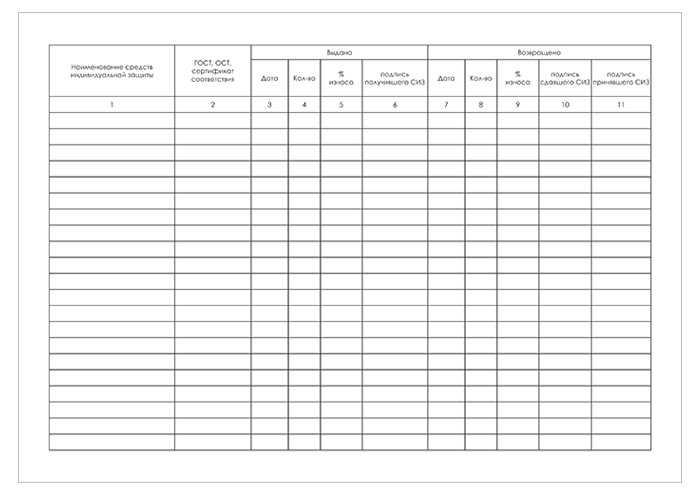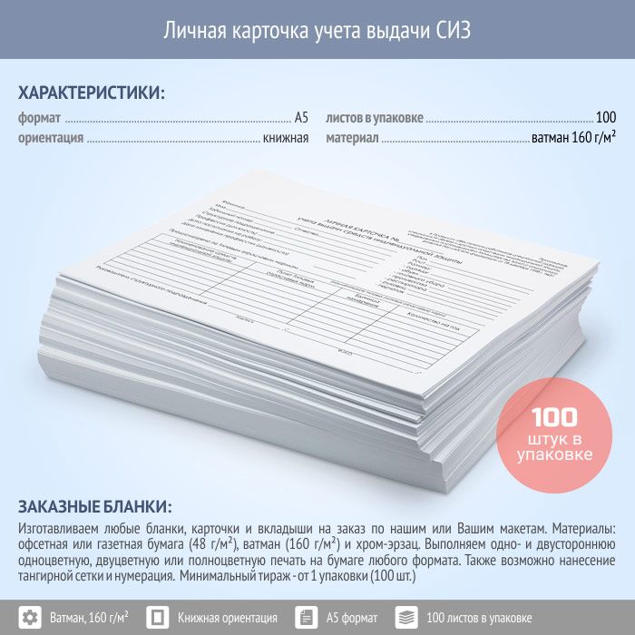 Карточка выдачи СИЗ (приказ Минздравсоцразвития от 01.06.2009 г. №290н, упаковка 100 штук) в Краснодаре купить