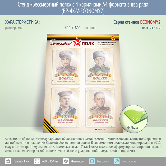 Стенд «Бессмертный полк» с 4 карманами А4 формата в два ряда (BP-4K-V-ECONOMY2) в Краснодаре купить