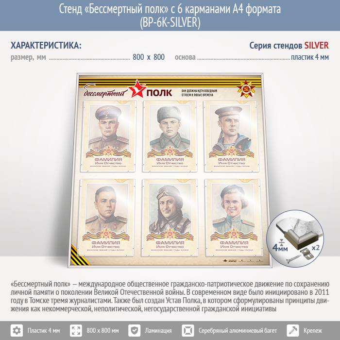 Стенд «Бессмертный полк» с 6 карманами А4 формата (BP-6K-SILVER) в Краснодаре купить