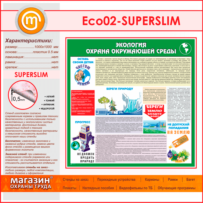 Стенд «Экология - Охрана окружающей среды» (ECO-02-SUPERSLIM) в Краснодаре купить