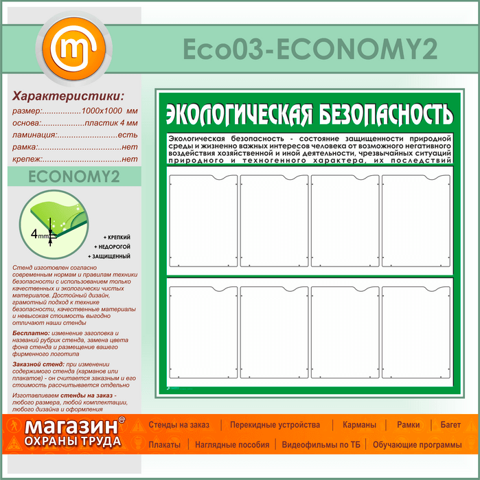 Стенд «Экологическая безопасность» с 8 карманами (ECO-03-ECONOMY2) в Краснодаре купить