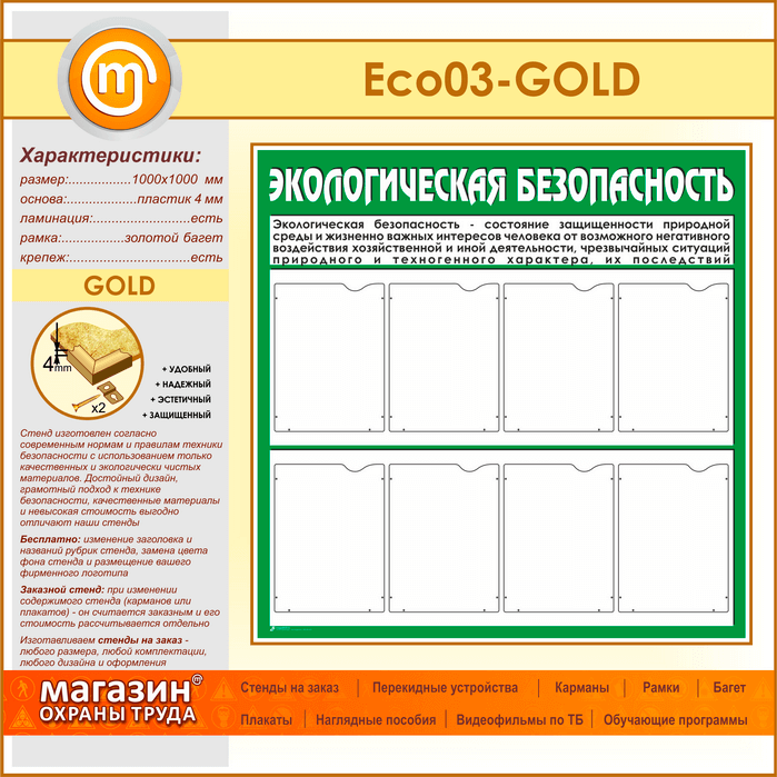 Стенд «Экологическая безопасность» с 8 карманами (ECO-03-GOLD) в Краснодаре купить