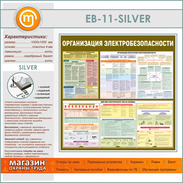 Стенд «Организация электробезопасности» (EB-11-SILVER) в Краснодаре купить