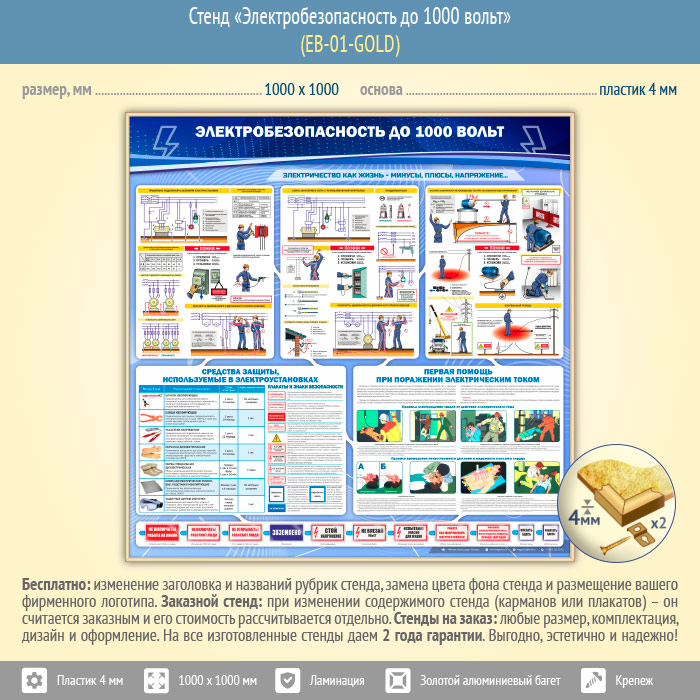 Стенд «Электробезопасность до 1000 вольт» (EB-01-GOLD) в Краснодаре купить