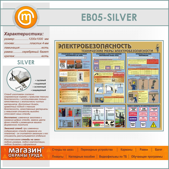 Стенд «Электробезопасность. Технические меры электробезопасности» (EB-05-SILVER) в Краснодаре купить