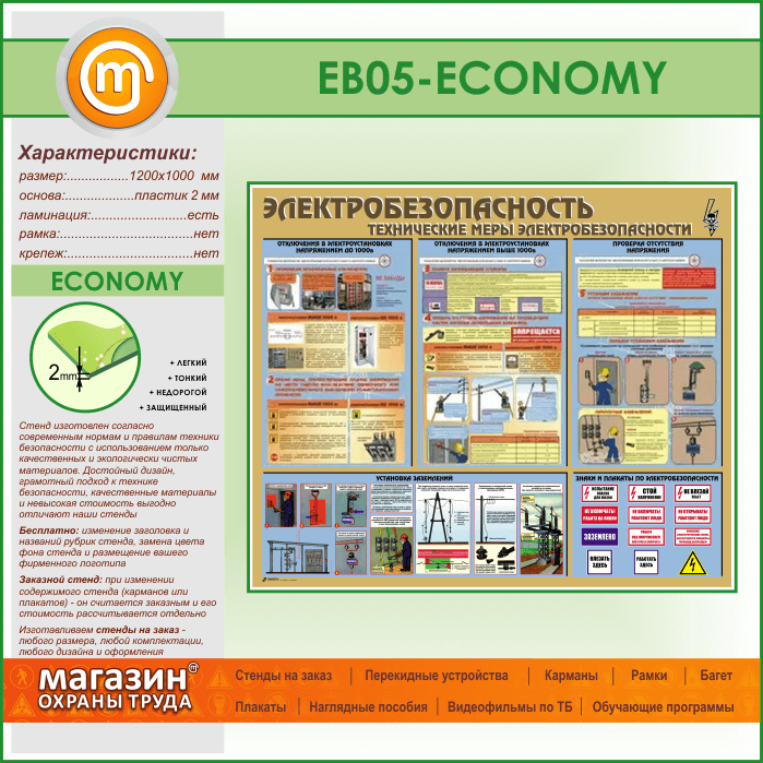 Стенд «Электробезопасность. Технические меры электробезопасности» (EB-05-ECONOMY) в Краснодаре купить