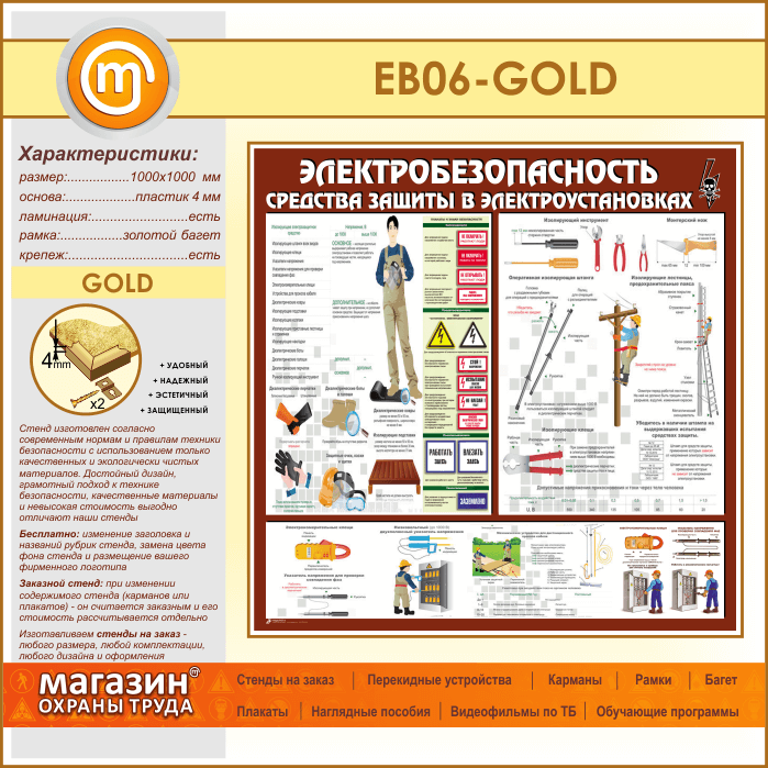 Стенд «Электробезопасность. Средства защиты в электроустановках» (EB-06-GOLD) в Краснодаре купить