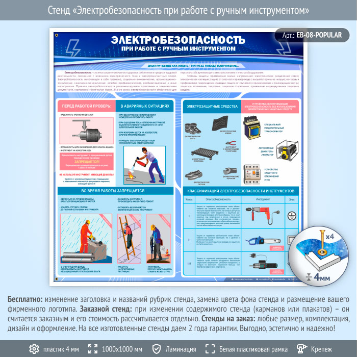 Стенд «Электробезопасность при работе с ручным инструментом» (EB-08-POPULAR) в Краснодаре купить