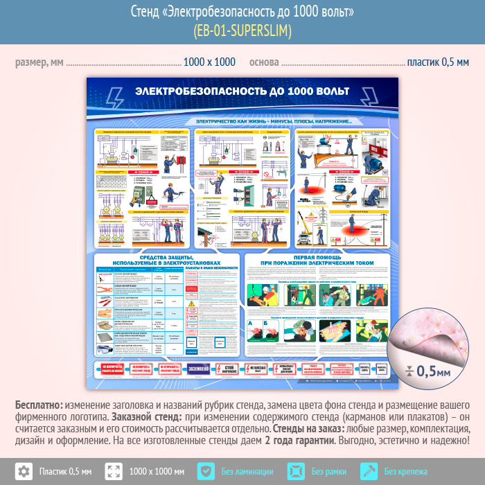 Стенд «Электробезопасность до 1000 вольт» (EB-01-SUPERSLIM) в Краснодаре купить