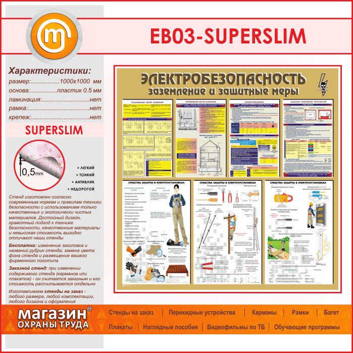 Стенд «Электробезопасность. Заземление и защитные меры» (EB-03-SUPERSLIM) в Краснодаре купить