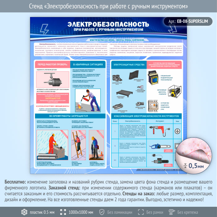 Стенд «Электробезопасность при работе с ручным инструментом» (EB-08-SUPERSLIM) в Краснодаре купить