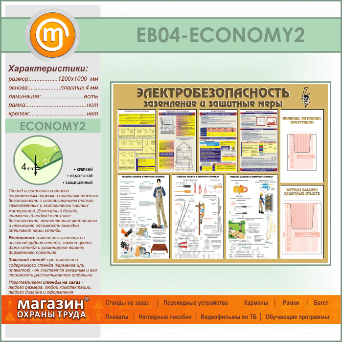 Стенд «Электробезопасность. Заземление и защитные меры» с 2 объемными карманами (EB-04-ECONOMY2) в Краснодаре купить