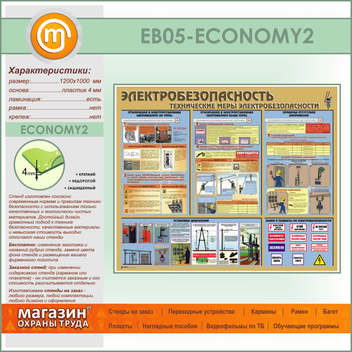Стенд «Электробезопасность. Технические меры электробезопасности» (EB-05-ECONOMY2) в Краснодаре купить