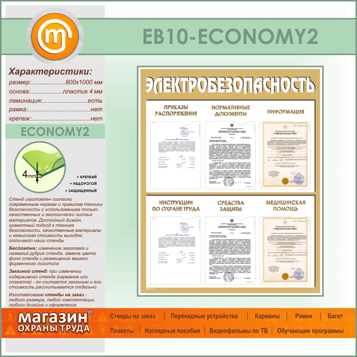 Стенд «Электробезопасность» с 6 карманами (EB-10-ECONOMY2) в Краснодаре купить