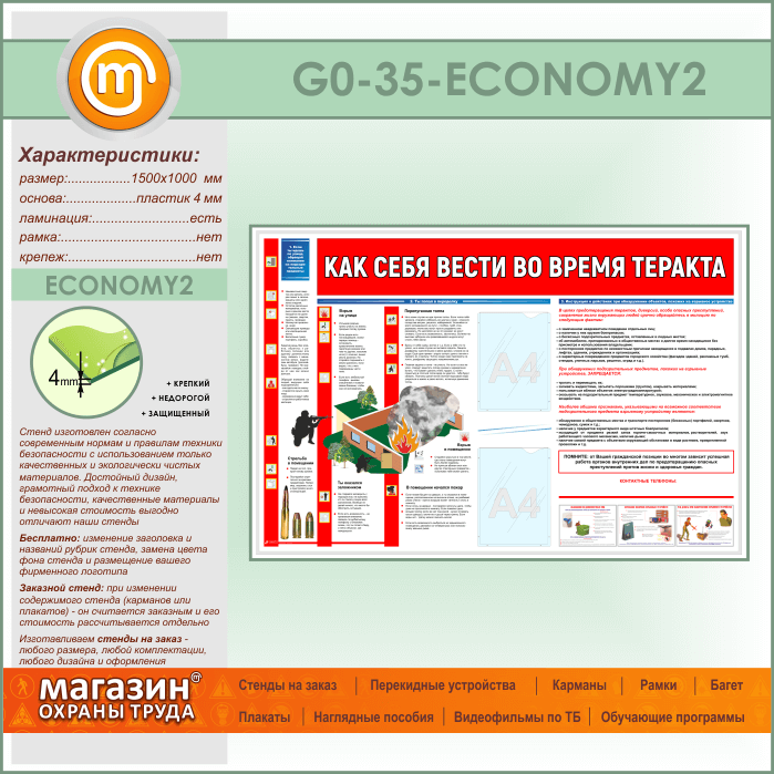 Стенд «Как себя вести во время теракта» c 2 карманами (GO-35-ECONOMY2) в Краснодаре купить