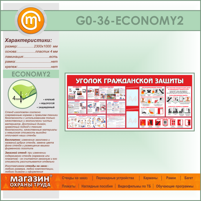 Стенд «Уголок гражданской защиты» c 2 карманами (GO-36-ECONOMY2) в Краснодаре купить