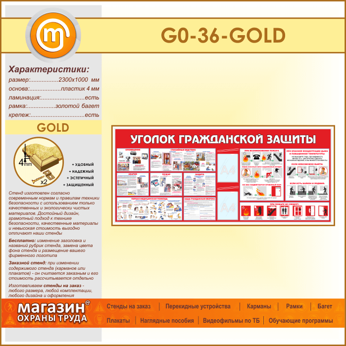 Стенд «Уголок гражданской защиты» c 2 карманами (GO-36-GOLD) в Краснодаре купить