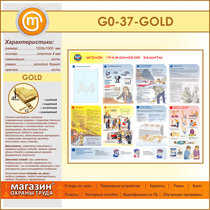 Стенд «Уголок гражданской защиты» с карманом (GO-37-GOLD) в Краснодаре купить